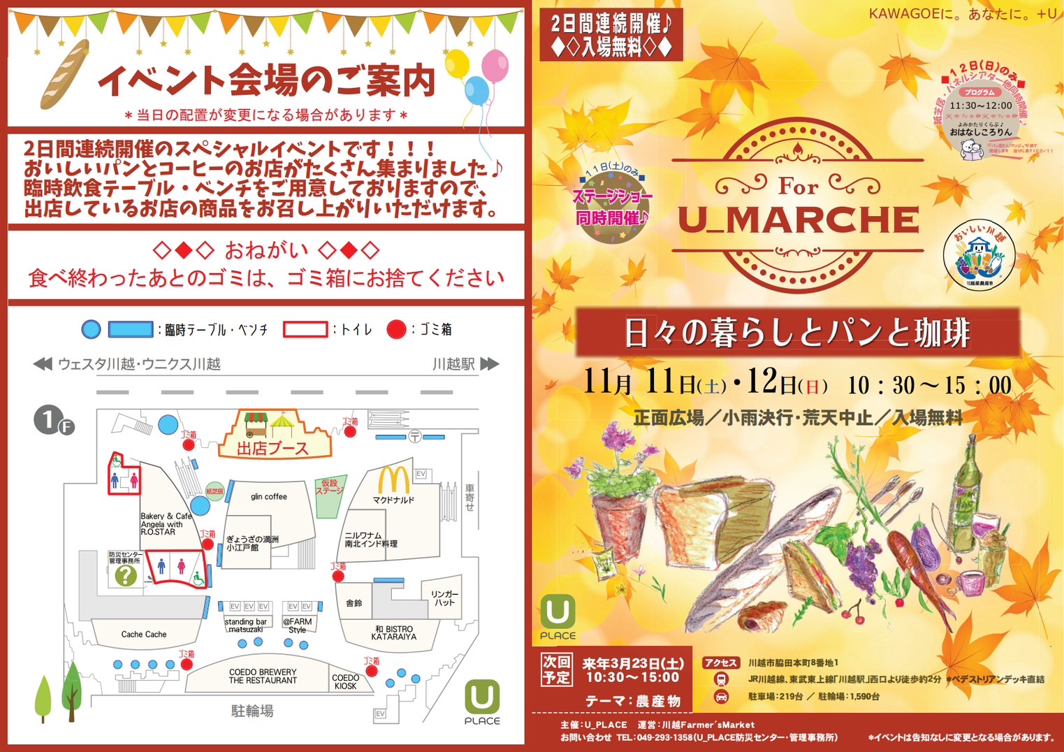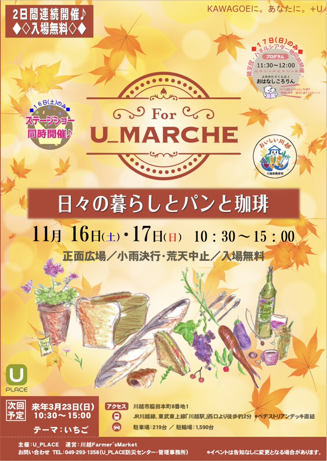 U_PLACE川越で開催されるイベント「For U_MARCHE日々の暮らしとパンと珈琲」にて演奏致します!