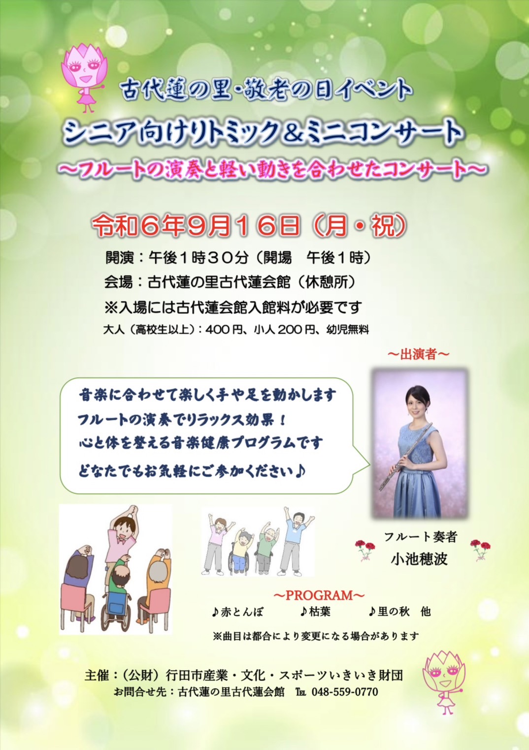 古代蓮の里・敬老の日イベントシニア向けリトミック&ミニコンサートに出演致します♪